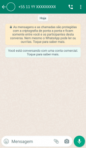 Ao clicar no link em um Smartphone o cliente será redirecionado diretamente para uma conversa do WhatsApp com o telefone disponibilizado: